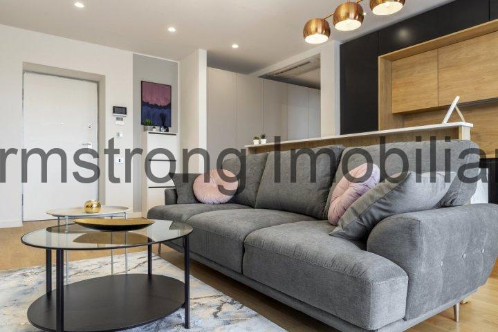 Apartament cu 2 camere situat in zona de nord a capitalei, Floreasca Mall Promenada, intr-o cladire noua finnalizata in 2021. Apartamentul are suprafata totala de 65 mp si o terasa de 11 mp si este amplasat la etajul 2. Este mobilat si utilat in totalitate pentru locuit. Apartamentul este amenajat cu designer de interior, totul este in categoria lux. Bucatarie si Living